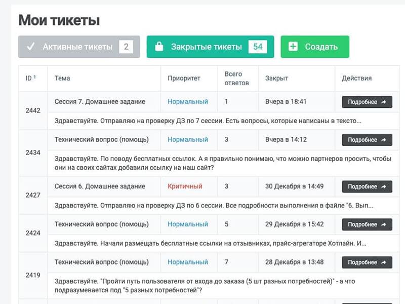 На ваши вопросы через форму тикетов будет отвечать команда экспертов, погружаясь в вашу сферу бизнеса и заданный вопрос. Они помогут разобраться в материале и подскажут, что и как необходимо делать.